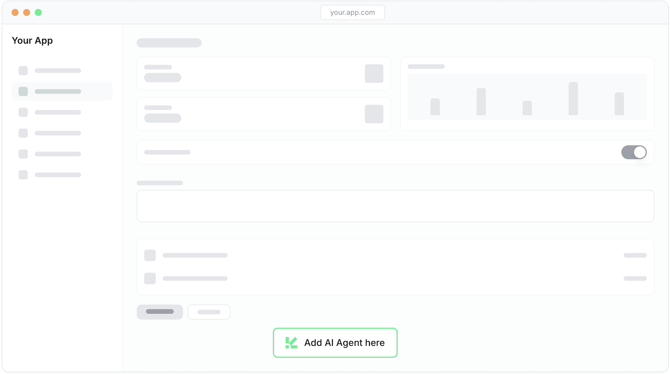 Navigate in your app to any page, and click to place an AI assistant there. That's it.